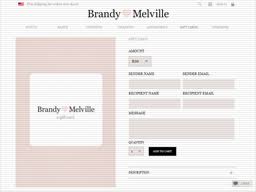 Darden - Email Delivery. Purchase a Brandy Melville E-Gift. E-gift cards are sent to the recipient email after you place your order while an order confirmation will be sent to the email the order is placed with.